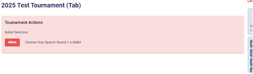 About 30-45 minutes before the round begins, judges will begin to see notifications by text and on the tournament dashboard that it’s time to select a ballot.