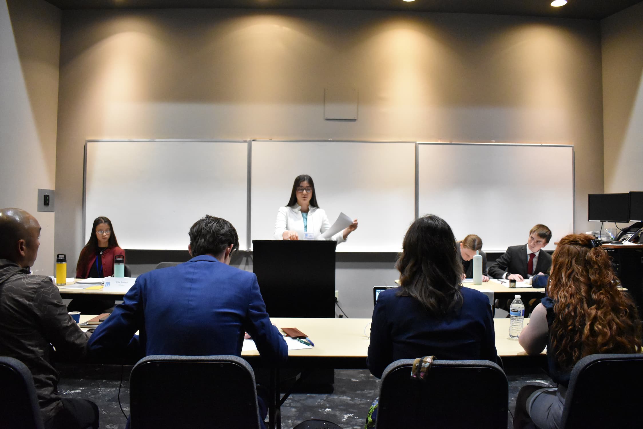 We ask that you not interrupt or ask questions of the competitors during or after the round. Speaking between judges and competitors should be limited to the competitor introduction, timing information, and any reasonable communication needed to deal with the logistics of the speaking situation.